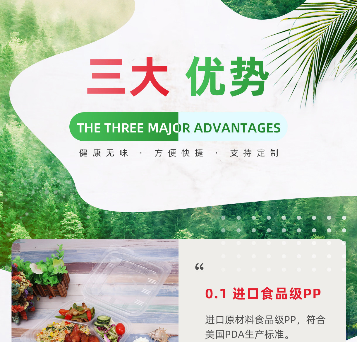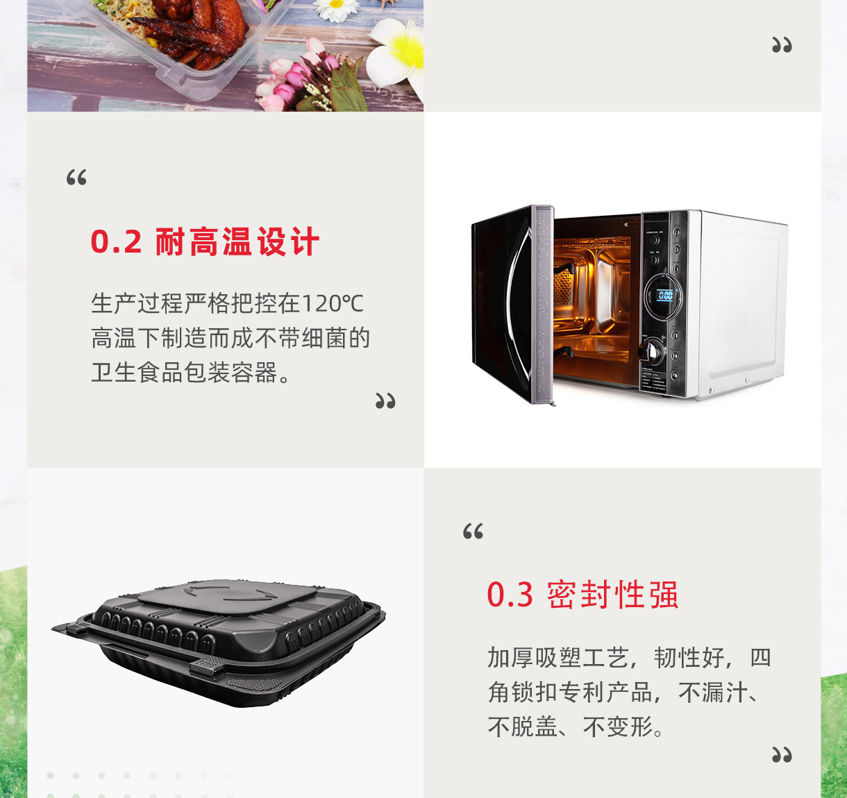 一次性pp飯盒帶蓋封口黑色方形三格格快餐盒