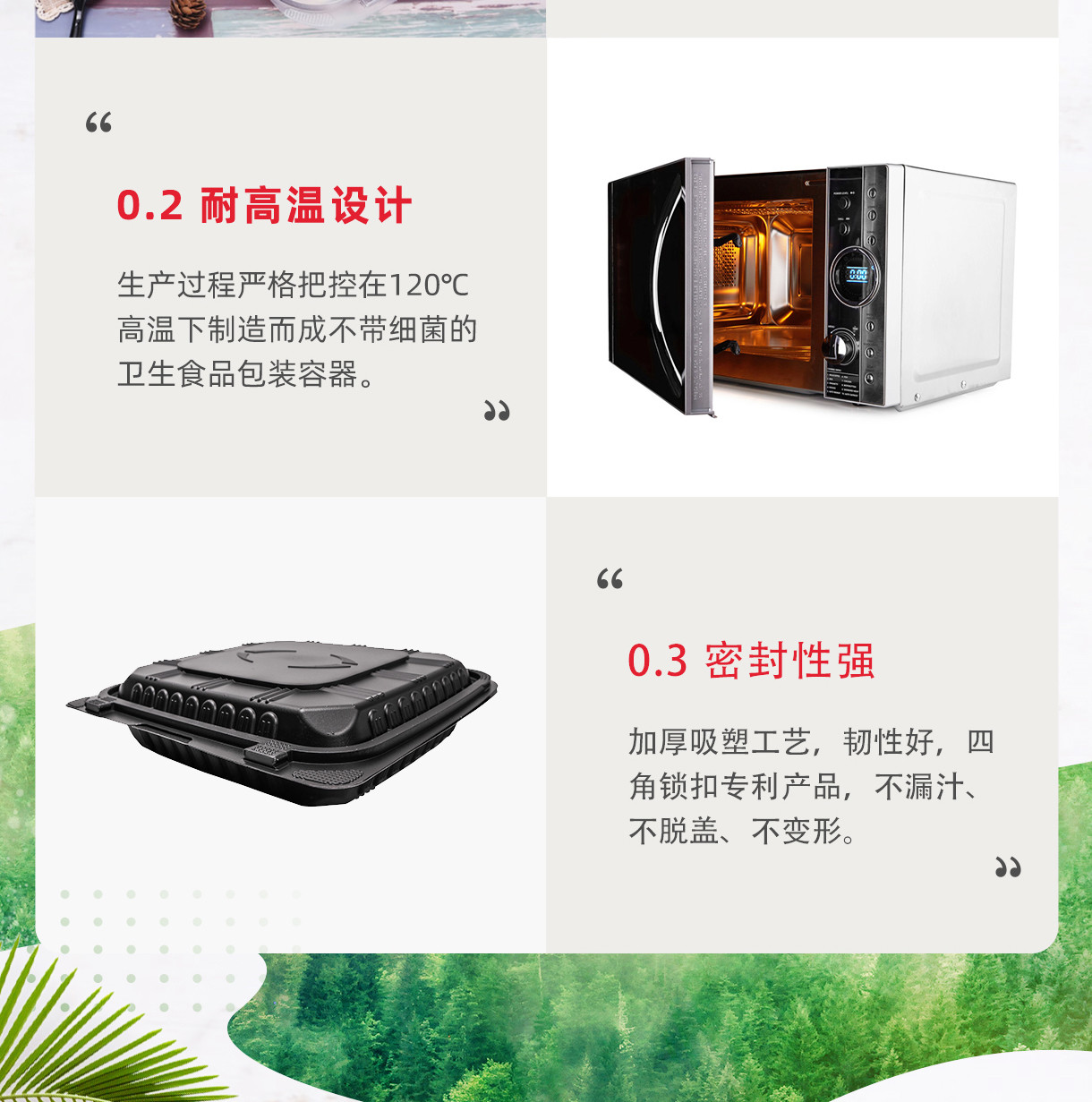 一次性pp飯盒帶蓋封口黑色方形一格格快餐盒