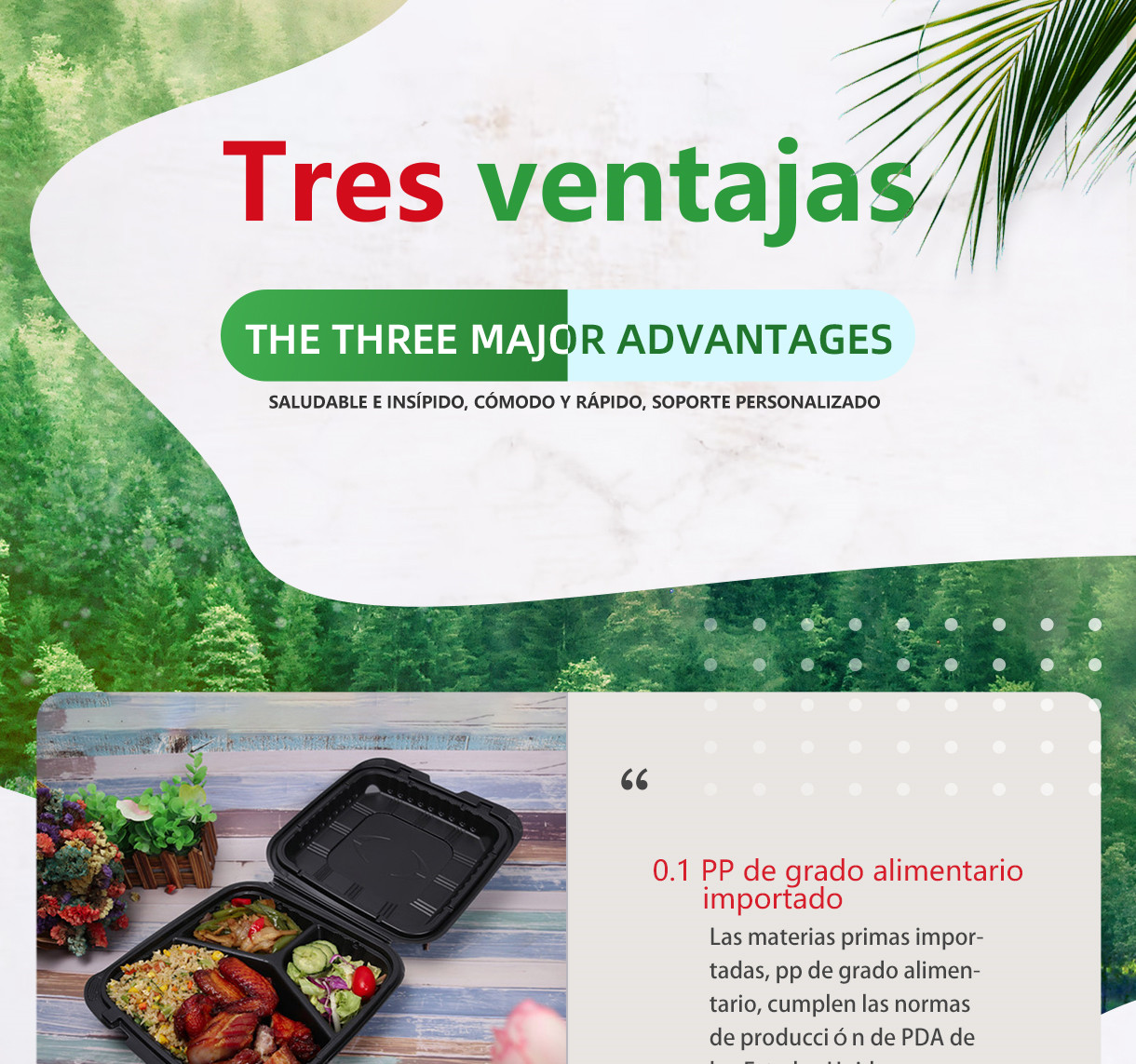 Caja de almuerzo sellada PP desechable caja de comida rápida cuadrada negra