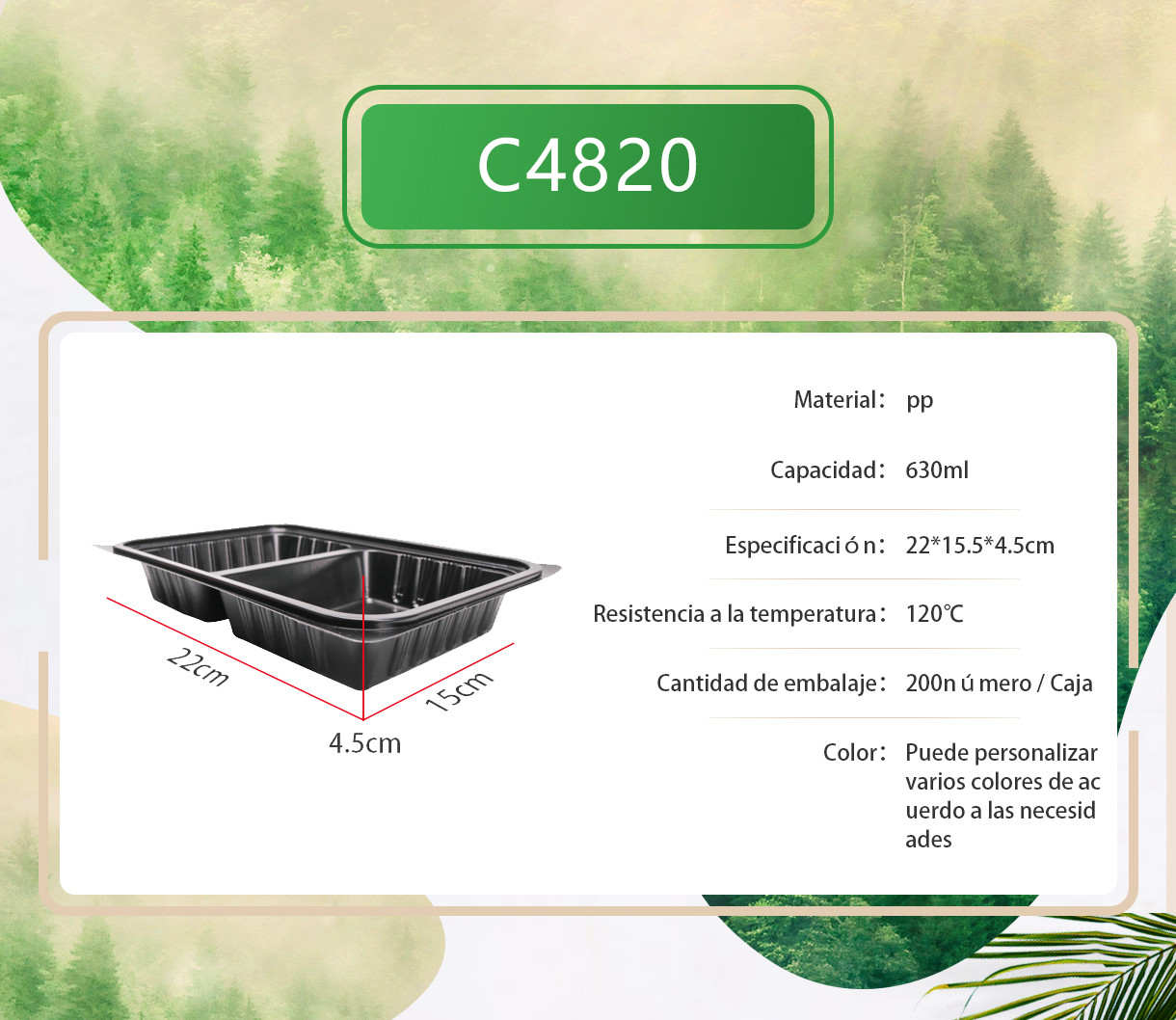 Caja de comida rápida cuadrada y negra con tapa BOPS